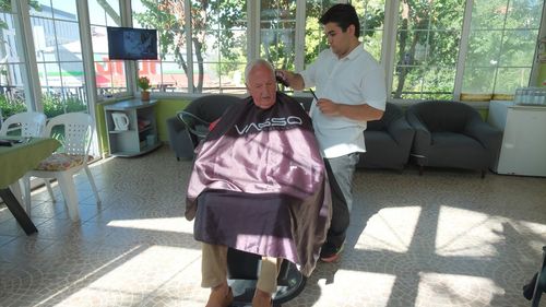 Kırklareli'de gönüllü kuaför ve berberler, Ahilik Haftası kapsamında huzurevini ziyaret edip sakinlerin saç bakımlarını yaptı ve hediyeler verdi.