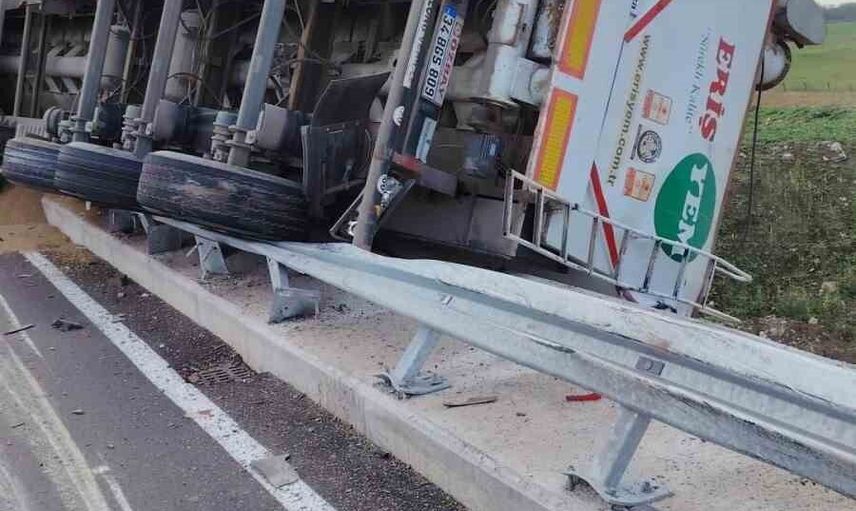 Edinilen bilgilere göre, çiftliğe yem taşıyan tır, virajı geçtikten sonra saat 19.00 sıralarında köprü üzerinde devrildi. Yüklü miktarda yem yola ve köprüden saçıldı.