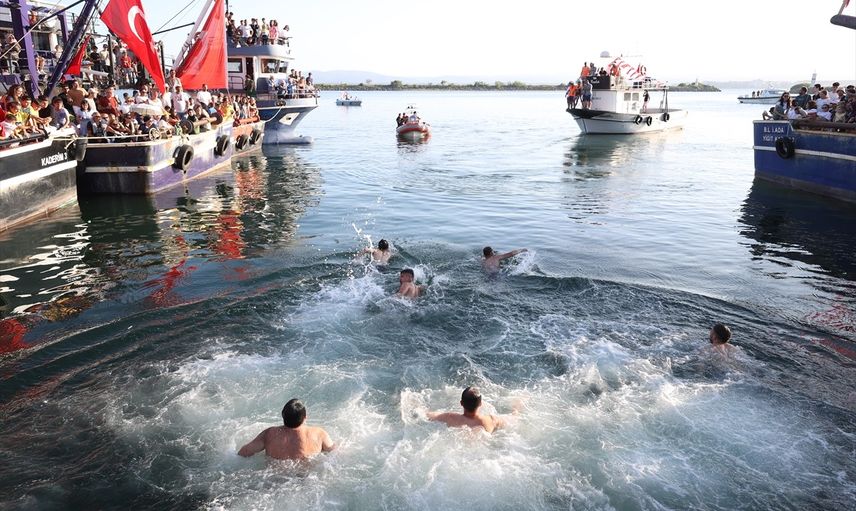 Sahil Güvenlik Komutanlığı botunun gösterisinin ardından, çeşitli kategorilerde yüzme yarışları düzenlendi. Tekneden denize bırakılan yarışmacılar, karaya ulaşmak için kıyasıya bir mücadele verdiler.