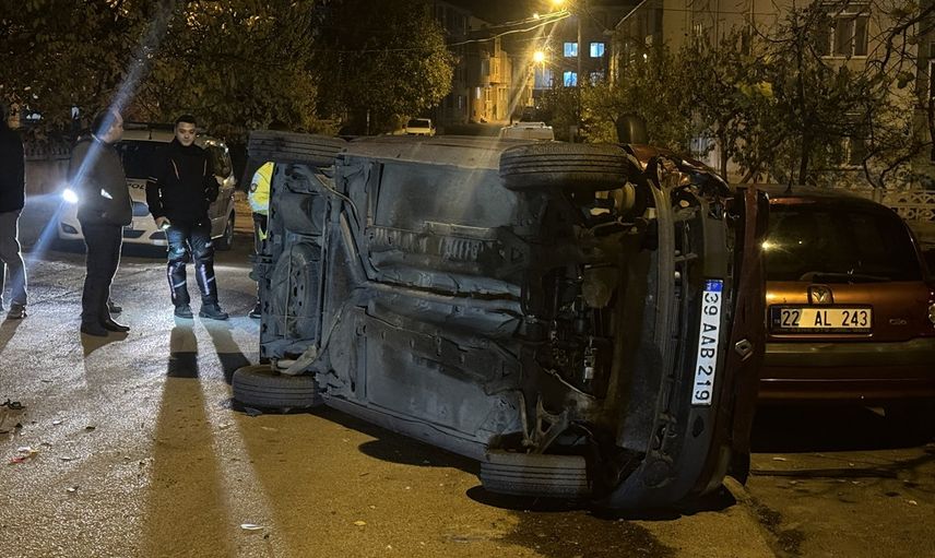 Kırklareli'nin Kocahıdır Mahallesi'nde yaşanan olayda, park halindeki iki otomobile çarpan 39 AAB 219 plakalı hafif ticari araç devrildi. Sürücüsünün kimliği henüz belirlenemedi.