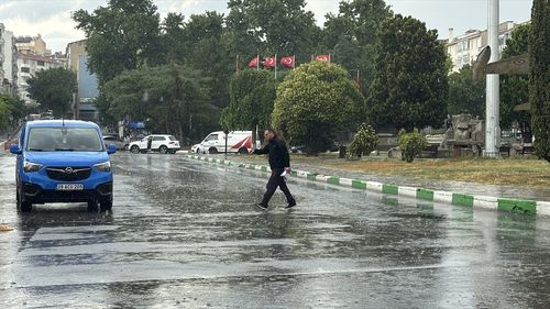 Kırklareli'de etkili olan sağanak yağış, caddelerde su birikintilerine neden oldu.
