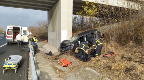 Kırklarelispor oyuncusu Cenk Doğan, üst geçide çarpan otomobiliyle kaza yaptı ve yaralandı.