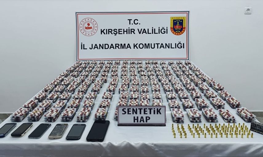 Kırşehir'de düzenlenen uyuşturucu operasyonunda, bir otomobilde 8 bin 330 sentetik hap, 75 tabanca fişeği ve 6 cep telefonu ele geçirildi, 1 zanlı gözaltına alındı.