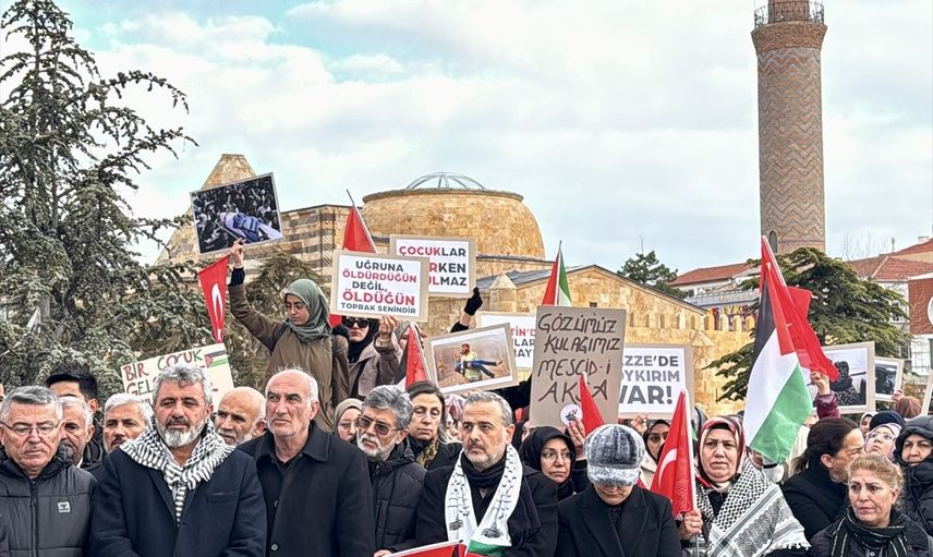 Kırşehir Kudüs Platformu, İsrail'in Filistin'e yönelik saldırılarına sert tepki gösterdi. Cacabey Meydanı'nda bir araya gelen platform üyeleri ve vatandaşlar, Kur'an-ı Kerim tilavetinin ardından dua ettiler.