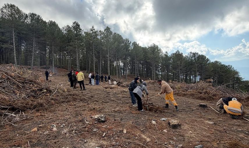 KIRŞEHİR’DEN GELEN ÜNİVERSİTE ÖĞRENCİLERİ ÇİNE’DE FİDAN DİKTİ