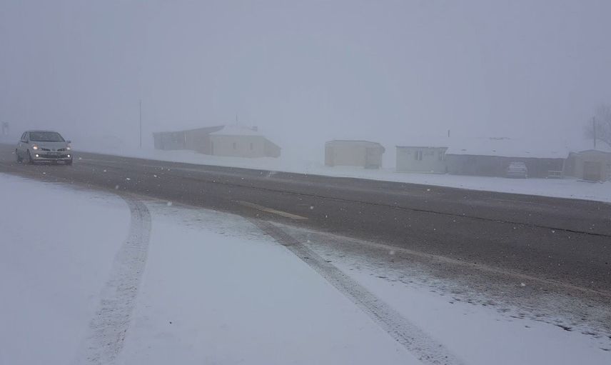Erzincan'ı Sivas'a bağlayan 2190 rakımlı Kızıldağ Geçidinde kar yağışı etkili oldu.
