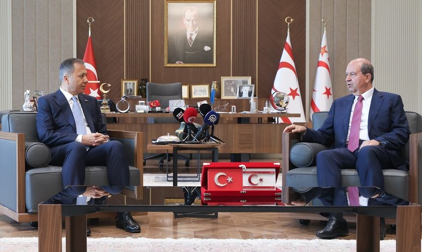 Kuzey Kıbrıs Türk Cumhuriyeti (KKTC) Cumhurbaşkanı Ersin Tatar, İçişleri Bakanı Ali Yerlikaya ile önemli bir görüşme gerçekleştirdi. Tatar, resmi temaslarda bulunmak üzere KKTC'ye gelen Yerlikaya'yı Cumhurbaşkanlığı Yerleşkesi'nde kabul etti.