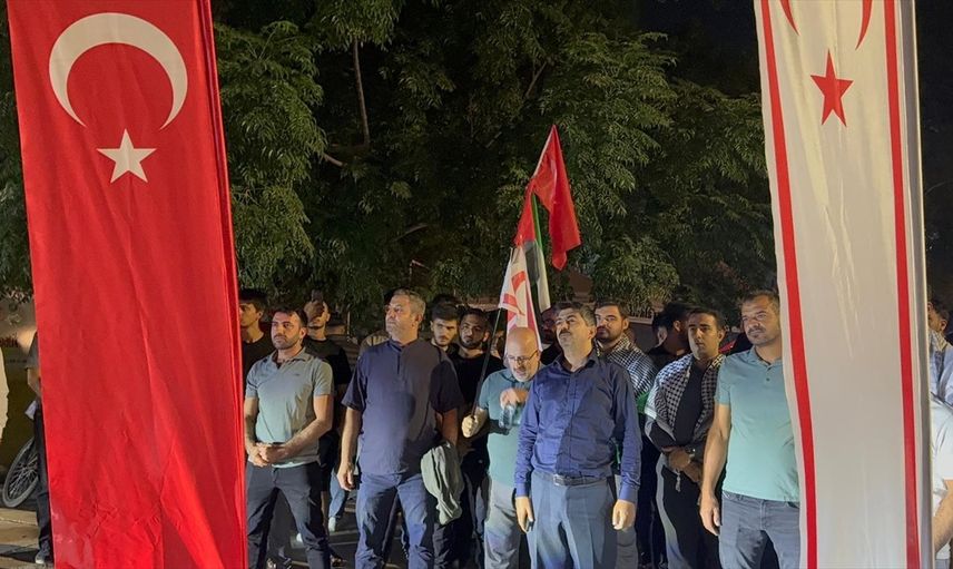 Kuzey Kıbrıs Türk Cumhuriyeti'nde (KKTC), Kıbrıs Filistin İnisiyatifi, başkent Lefkoşa'da, İsrail'in Küresel Sumud Filosu'na saldırısını protesto etti.