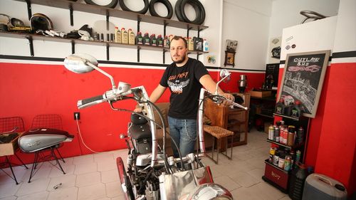 Edirneli 28 yaşındaki Deniz Kırkaya, kendi motosikletini onararak öğrendiği meslekle bir yıl önce klasik motosiklet atölyesi açtı; chopper, cruiser ve custom tamiri yapıyor.