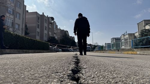 Kocaeli İzmit'te istinat duvarındaki kayma sonucu Huzur Sokak trafiğe kapatıldı. 5-6 cm kayma ve asfalt çatlakları oluştu.