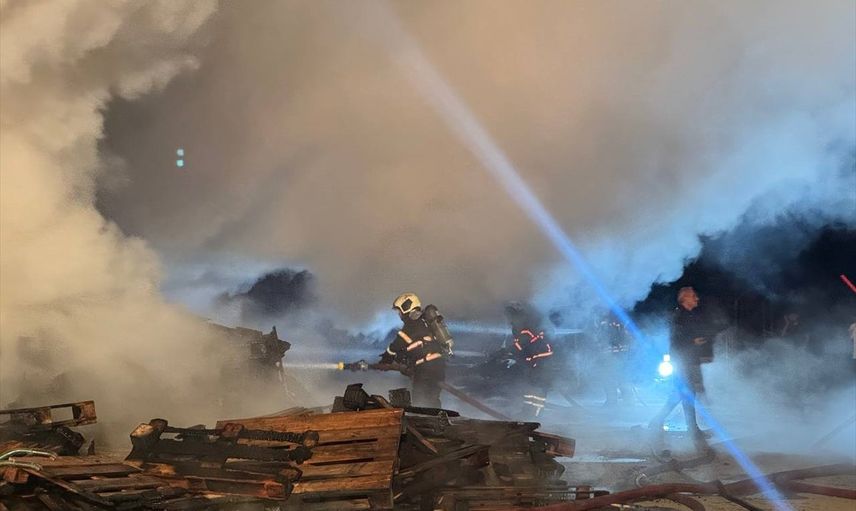 Kocaeli’de Palet Deposunda Yangın Olayı