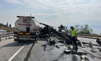 Çarpmanın etkisiyle savrulan tanker, bariyerlere vurarak durabildi. Olayın bildirilmesi üzerine bölgeye polis, sağlık ve itfaiye ekipleri sevk edildi.