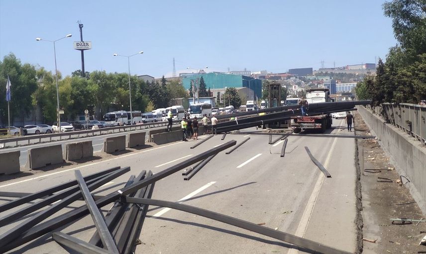 Kocaeli'de tırdan yola düşen demir profiller nedeniyle D-100 kara yolunun İstanbul istikametinde ulaşım sağlanamıyor.