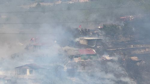 Kocaeli'nin Derince ilçesinde Çenedağ Mahallesi'ndeki otluk yangınına, itfaiye ve Orman Müdürlüğü ekipleri tarafından havadan ve karadan müdahale ediliyor.