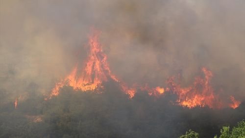 Kocaeli'nin Derince ilçesinde çıkan makilik ve ağaçlık alandaki yangına itfaiye ve orman ekipleri müdahale ediyor.