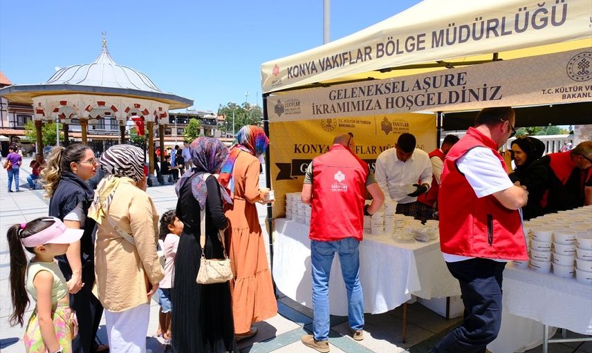 Konya Vakıflar Bölge Müdürü Yılmaz Kılınç, aşurenin paylaşmanın ve dayanışmanın simgesi olduğunu vurgulayarak, aşure ikramlarının Sultan Selim ve Kapu Camileri önünde Konya'da, Ulu Cami önünde Aksaray'da, Aktekke Camisi önünde ise Karaman'da yapıldığını ifade etti.