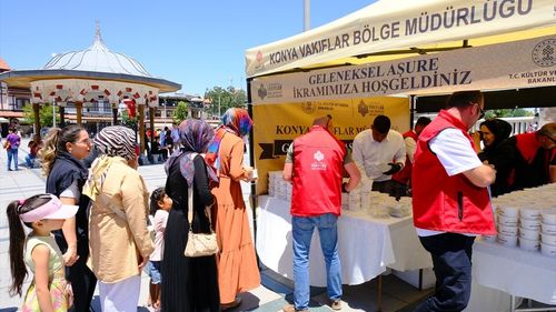 Konya, Aksaray ve Karaman'da vatandaşlara aşure ikramında bulunuldu. 10 bin kişiye ulaşılması hedefleniyor.