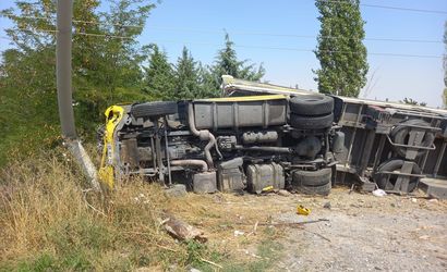 T.G. (42) idaresindeki 42 AIR 482 plakalı tır, Akşehir D-300 kara yolu otogar yakınlarında şarampole devrildi.