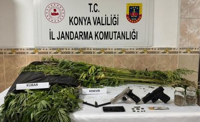 Operasyonda ele geçirilenler arasında 2 kilo 100 gram kubar esrar, 138 kök kenevir, 200 gram kenevir tohumu, 2 esrar sarma kağıdı, 1 kurusıkı tabanca, 1 kurusıkıdan çevrilmiş tabanca, 1 kelebek bıçak, 1 dedektör ve 7 sikke yer aldı.