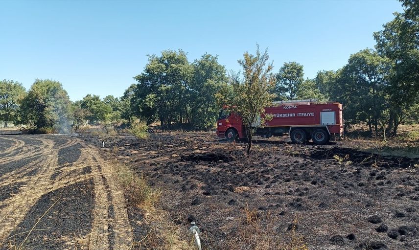 Konya'nın Beyşehir ilçesinde meydana gelen yangın, arpa ekili bir alanı etkisi altına aldı.
