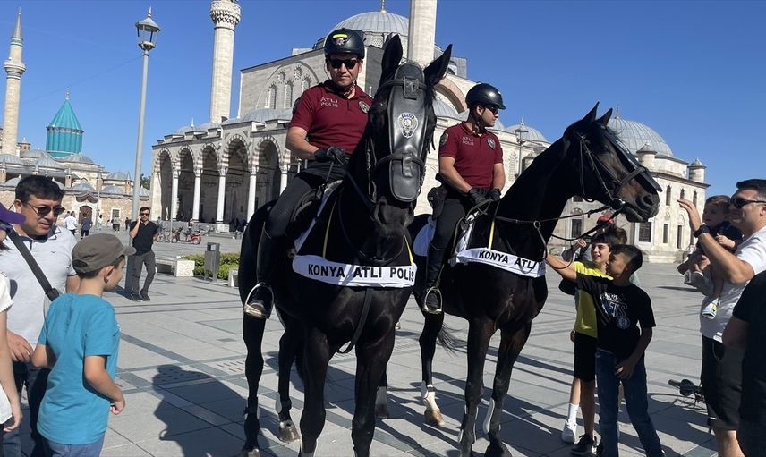 Mevlana Meydanı gibi önemli lokasyonlarda devriye atan atlı polisler, meraklı vatandaşların ilgisini çekti. Birçok kişi, bu etkileyici uygulamayı görerek onlarla fotoğraf çektirmeyi ihmal etmedi.