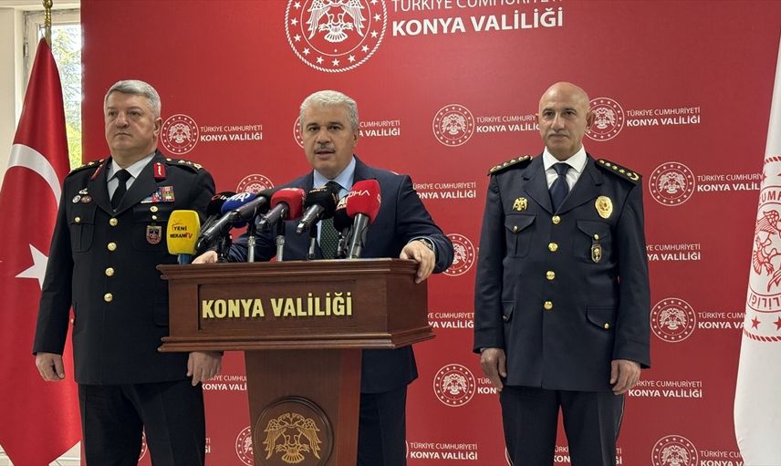 Konya Valisi İbrahim Akın, kentteki asayiş ve güvenlik durumuna ilişkin toplantı düzenledi. Vali Akın (ortada), İl Emniyet Müdürü Maksut Yüksek (sağda) ve İl Jandarma Komutanı Tümgeneral Cemil Lütfi Özkul'un (solda) katılımıyla valilikte basın toplantısı yaptı.