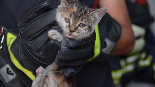 Konya'da alışveriş merkezi otoparkında arabanın motor kısmına sıkışan kedi yavrusu, itfaiye ekipleri tarafından kurtarıldı.
