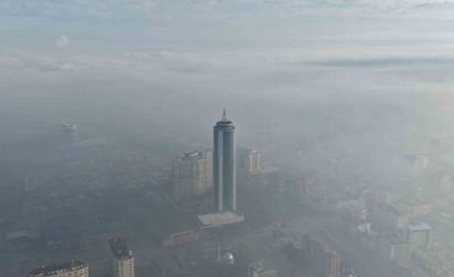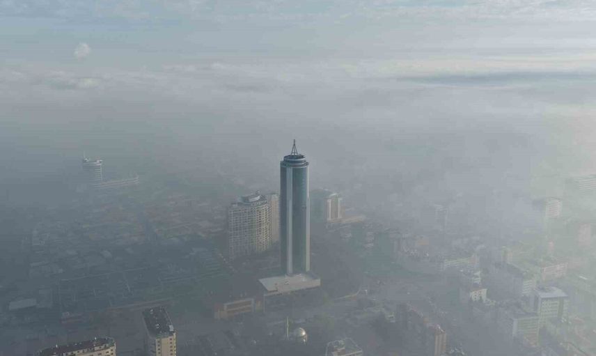 Şehir adeta sis bulutları arasında kaybolurken, görüş mesafesi azaldı ve kent merkezindeki binalar yer yer görünmez hale geldi.