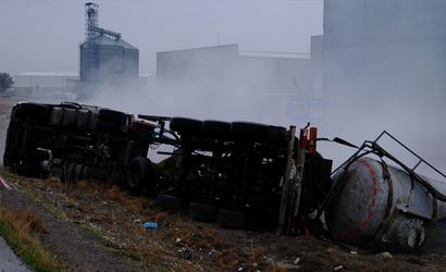 Konya'nın Karapınar ilçesinde kimyasal madde taşıyan tankerin devrilmesi sonucu sürücü hayatını kaybetti.