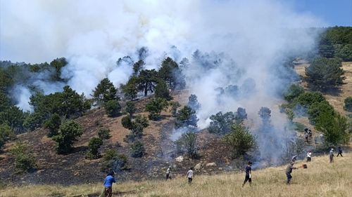 Konya'nın Doğanhisar ilçesinde çıkan orman yangınına havadan ve karadan müdahele ediliyor. Ekipler yangına hızlı bir şekilde müdahale ediyor.