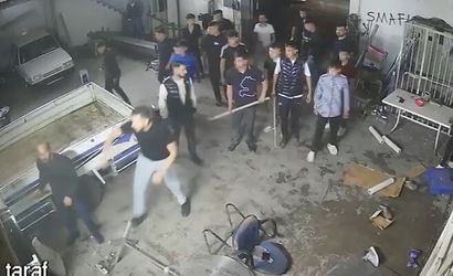 KONYA'DA BİR İŞ YERİNE GELEN ÇOĞU ÇOCUK YAŞTAKİ KALABALIK GRUBUN, İŞ YERİ SAHİBİ İKİ KARDEŞ İLE SOPA, KÜREK VE TÜFEKLE MEYDAN SAVAŞINI ANDIRAN KAVGA ANI GÜVENLİK KAMERASINA YANSIDI.