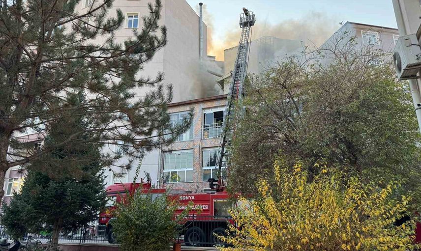 Konya Ereğli'de iş hanı çatısında yangın paniği