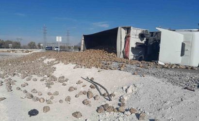 Konya’nın Karapınar ilçesinde sabah saatlerinde meydana gelen kazada, pancar yüklü tırın devrilmesi sonucu bir kişi yaralandı.