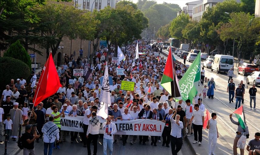Yürüyüş, Konya Sivil Toplum Kuruluşları Platformu tarafından organize edildi. Vatandaşlar Kılıçarslan Meydanı'nda toplanarak ellerinde bayrak ve pankartlarla Zafer Meydanı'na yürüdü. Kalabalık, İsrail aleyhine sloganlar attı.