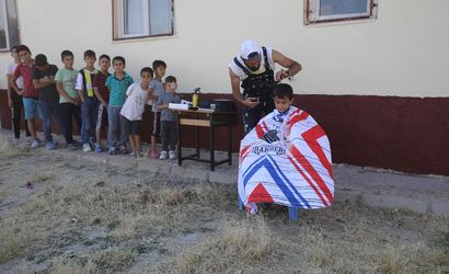 41 yaşındaki Aslan, Karaman'daki Temizel-Ünlü Mesleki ve Teknik Anadolu Lisesi'nde beden eğitimi öğretmenliği yapıyor. Erciş'e arkadaşlarıyla birlikte gelerek üç okulda çevre düzenlemesi yapan Aslan, aynı zamanda öğrencilere saç tıraşı hizmeti de sundu. Berber arkadaşı İsmail Yıldırım ile birlikte yaptıkları bu sosyal sorumluluk projesi, yerel halk tarafından büyük bir takdirle karşılandı.