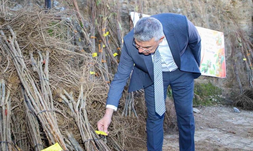 AYDIN'IN KÖŞK İLÇESİNDE KESTANE FİDANLARI ÜRETİCİLERE DAĞITILIRKEN, KÖŞK BELEDİYE BAŞKANI NURİ GÜLER DE EMEĞİ GEÇEN HERKESE TEŞEKKÜR EDEREK "BEREKETLİ OLSUN" DEDİ.