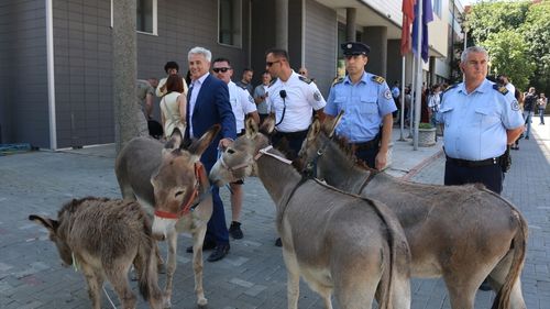 Kosova'da 41 oturumda başkan seçilemeyince protesto için meclis önüne eşek getirildi. Siyasi belirsizlik devam ediyor.