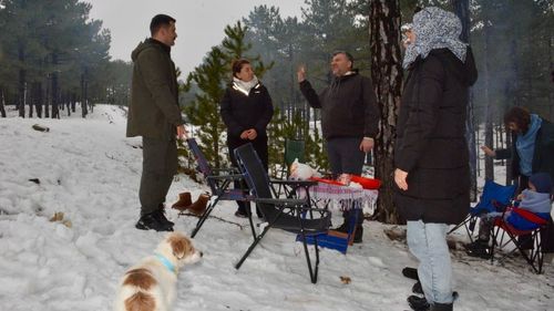 Sandras Dağı Gökçeova'da kar sonrası güneşli havayı fırsat bilen vatandaşlarla Köyceğiz Kaymakamı Mert Kumcu, bölgedeki kar keyfine sürpriz ziyarette bulundu.
