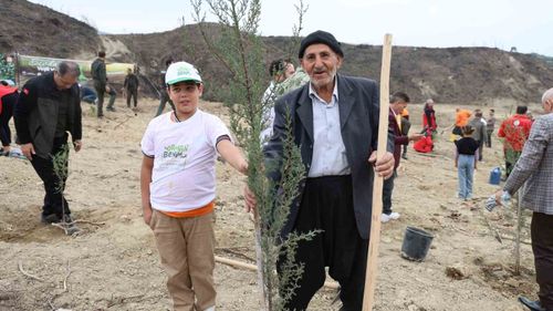 Kozan'da dede-torun 11 Kasım'da yangın bölgesine 2.500 fidan dikti