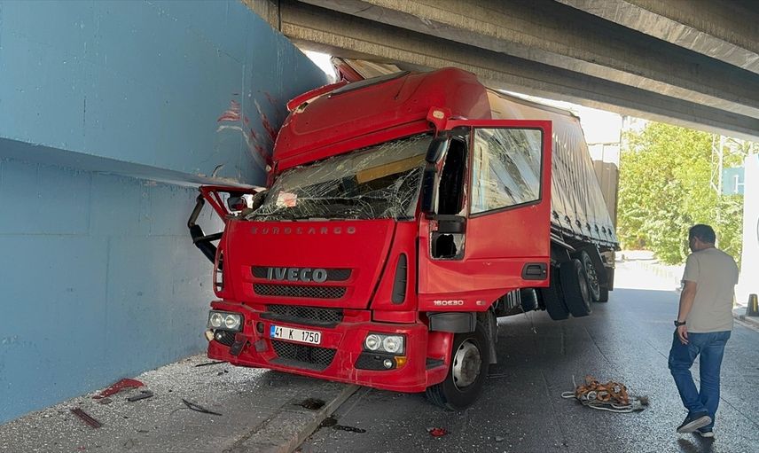 Yenimahalle Mahallesi Hatboyu Caddesi'nde meydana gelen kazada, 41 K 1750 plakalı kamyon alt geçidin duvarına çarparak sıkıştı. Kazada, kamyonu kullanan sürücünün oğlu 11 yaşında yaralandı.