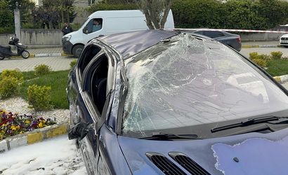 Küçükçekmece'de test sürüşü sırasında kaldırımdaki demir dubalara çarparak devrilen otomobilin sürücüsü yaralandı.