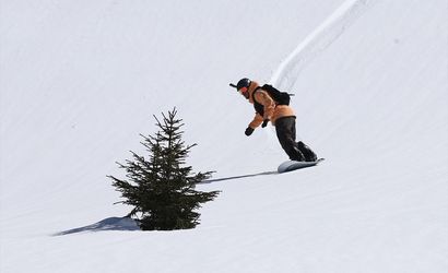 Giresun'un 1700 rakımlı Kümbet Yaylası'nda snowboard etkinliği gerçekleştirildi. Yaylaya gelen sporcular, karlı yamaçlarda ladin ağaçlarının arasından snowboard ile kaydı.