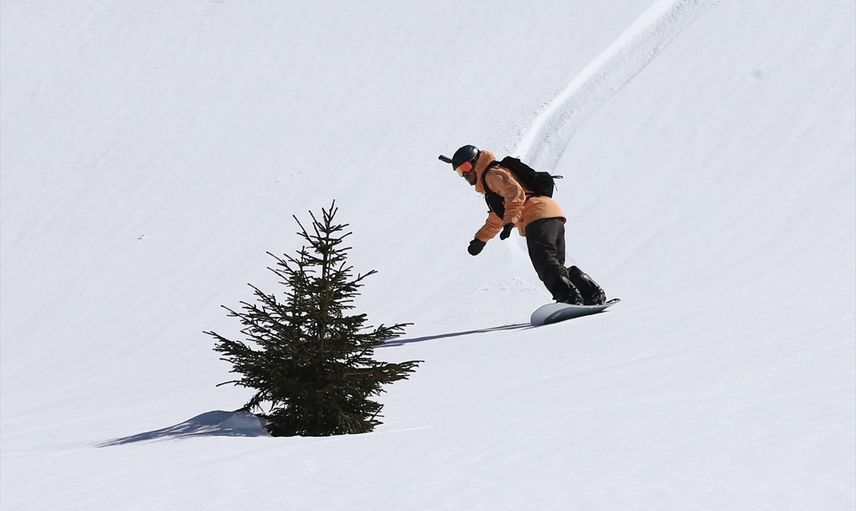 Etkinliğe katılan snowboard sporcuları, karlı yamaçlarda ladin ağaçları arasında kayarak eğlenceli anlar yaşadı. Snowboard sporu ile yaklaşık 5 yıldır ilgilenen Volkan Çelebi, güneşli havada kar motoruyla zirveye çıkarak, karla kaplı yamaçlarda kaymanın tadını çıkardı.
