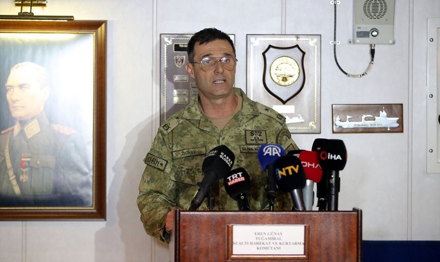 Türk Deniz, Kara ve Hava Kuvvetleri ile Sahil Güvenlik Komutanlığı unsurlarının katıldığı KURTARAN-2025 Tatbikatı'nın basın ve seçkin gözlemci günü safhası başladı. Muğla'nın Marmaris ilçesindeki Aksaz Deniz Üssü'nden hareket eden TCG Alemdar denizaltı personel arama kurtarma gemisi, kurtarma faaliyetlerini icra etmek üzere Akdeniz'e açıldı. Su Altı Harekat ve Kurtarma Komutanı Tuğamiral Eren Günay (fotoğrafta), gemide brifing verdi.