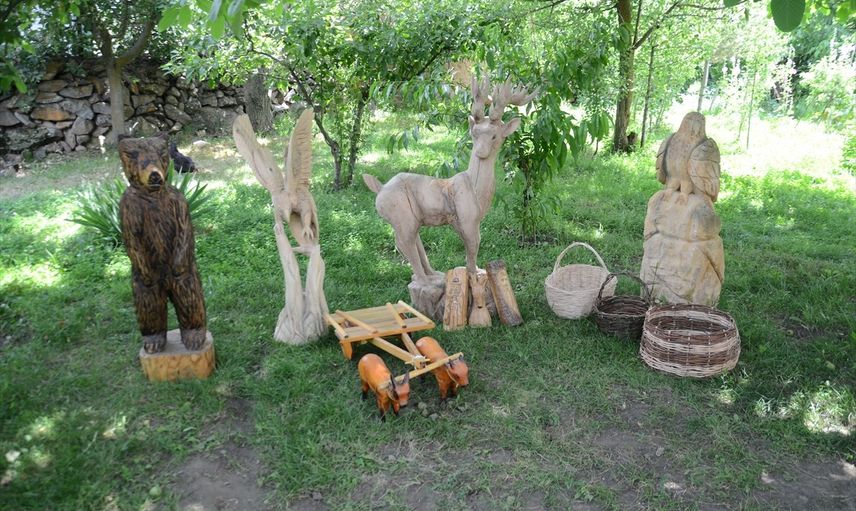 Sanatçı, boş zamanlarını değerlendirmek amacıyla bu çalışmalara yöneldi. “Burada çok söğüt ağacı var. Söğüt ağaçlarıyla bu işe başladım,” diyen Yoloğlu, ceviz ağacından geyik ve kartal heykelleri yaptığını ifade ediyor. Ayrıca, bazı eserlerini arkadaşlarına hediye ettiğini, kireç taşından eser yapmaya ise yeterince taş bulamadığını anlatıyor.