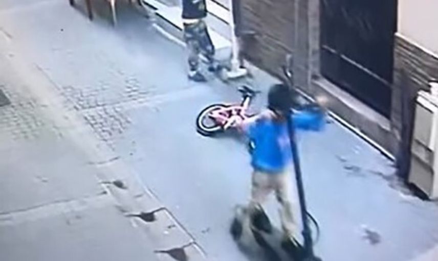 Çevredeki bir iş yerine ait güvenlik kamerası görüntülerinde, çocuklardan birinin boyundan büyük elektrikli scooter’a binerek bölgeden uzaklaştığı, diğer çocuğun ise yerine oyuncak scooter bıraktığı görüldü.