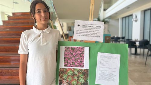 Kuşadası'ndaki öğrenciler, endemik bitkilerin korunmasının önemine dikkat çekmek için sergi açtı.