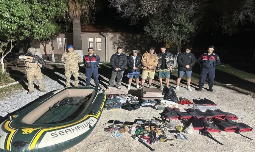 Operasyonda, düzensiz göçmenlerle birlikte şişme bot, kürekler, 5 adet can yeleği ile çeşitli yaşam malzemeleri ele geçirildi.