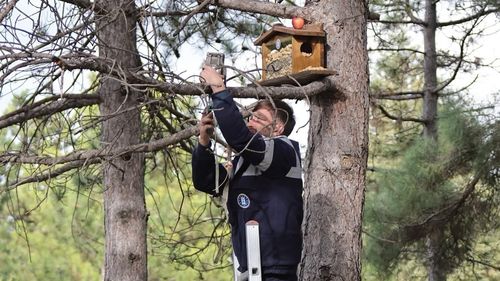 Kütahya Belediyesi, Yaşam Parkı, Millet Bahçesi ve Çamlıca Mesire Alanı'na yemlik ve fotokapan yerleştirerek sincap ve kuşların kış beslenmesini destekliyor.
