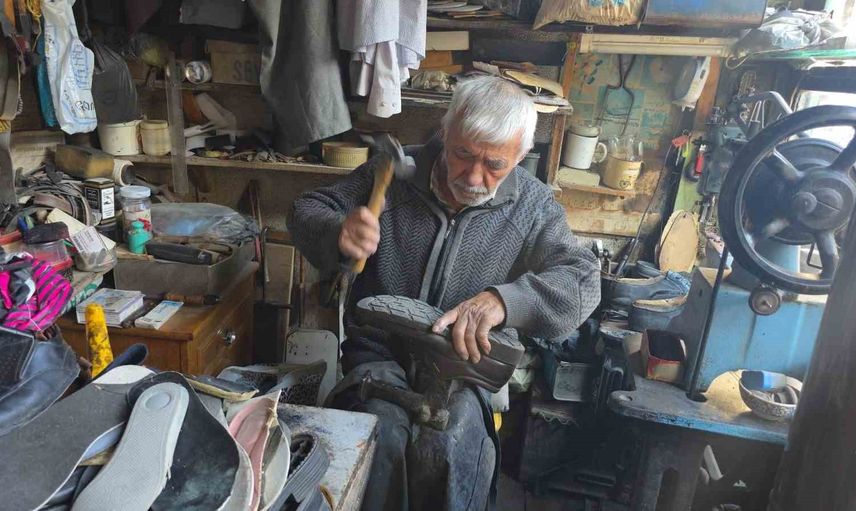 78 yaşındaki Mehmet Ersulak, 65 yıldır ayakkabı tamirciliği yaptığını belirterek, mesleğin giderek yok olduğunu söyledi. Ersulak, "Yıllarca çıraklık, kalfalık, ustalık yaptım. Ama artık bu meslek bitti diyebiliriz. Çünkü yetişen yok" dedi.